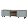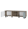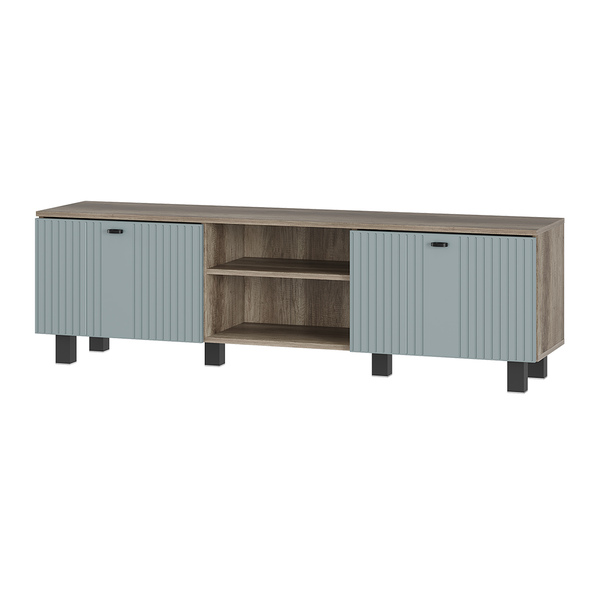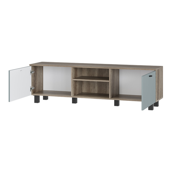 Тумба ТV.Габаритные размеры: 1214х372х362 мм. Закрыта единым фасадом, имеющим барный механизм открывания. Имеет внутреннюю перегородку, разделяющую тумбу на две равные части, и две несъемные внутренние полки. Нагрузка на тумбу - не более 30кг при равномерно распределённых статичных нагрузках.