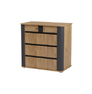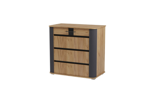 «БОСТОН Комод КМ-001» имеет следующие особенности: • комплектуется фасадами ЛДСП, либо МДФ; • кромка на фасадах ЛДСП – 1мм; • ручки отсутствуют – открытие с помощью захвата за фасад. Зазор для захвата – 30мм; • четыре ящика – на усиленных шариковых направляющих полного выдвижения (450мм); • нагрузка на направляющие — до 30 кг (при равномерно распределённой нагрузке с учётом веса ящика); • задняя стенка ЛХДФ устанавливается в паз-выборку в крышке, а относительно боковин и вязки нижней – является накладной; • не имеет видимых снаружи креплений; • изделие имеет универсальную сборку: ящики(4шт.) справа/слева, открывание створки (1шт.) соответственно налево/направо); • внутренний габарит ящиков Д.658 х В.138 х Г.418мм. Дно ящиков ЛХДФ усилено ребром жёсткости. Фасады ящиков имеют смещенную сверловку для универсальности сборки; • отделение со створкой: ширина проёма – 361мм, ширина полки – 435мм. Полка находится за декоративной планкой, высота проёмов – по 435мм. Полезная глубина отделения (место за планкой до задней стенки) – 426мм; • задняя стенка – ЛХДФ.