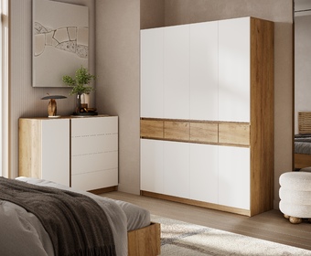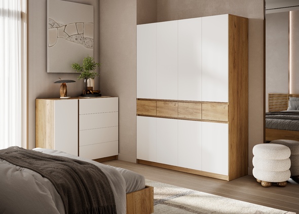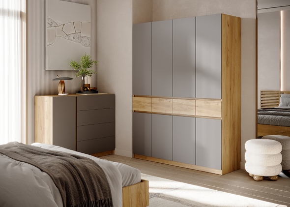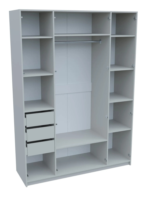 Преимущества шкафа Бостон ШК-004: • Многофункциональное наполнение • Шкаф выполнен полностью без ручек, все его элементы открываются за фасад. Для этого предусмотрены специальные зазоры между фасадами, прикрытые декоративными планками • Шкаф имеет две металлических штанги под одежду, а так же множество вместительных полок. • Высота шкафа позволяет по максимуму использовать ограниченное пространство квартиры • Возможно комплексное сочетание нескольких шкафов линейки «Бостон» в одну систему хранения • Шариковые направляющие у ящиков • Универсальная сборка