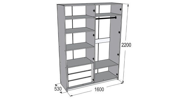Высота: 2100 мм. Ширина: 1604 мм. Глубина: 504 мм.